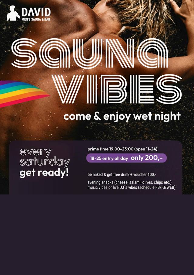 Sauna David Sokolovská 44, Prague, Czechia Loc: 50.092205N, 14.443368E Come warm up in the men's sauna, where DJs mixing live electronic deep vibes will get you hot ;) Additional Calendar Info Price Info ✔ Entrance: 420 Kč / 19€ ✔ Gift for couples sharing one locker ✔ age 18-25 entrance fee only 200 CZK ✔ 19:00 - 23:00 free refreshment 🧀🥩🥨 ✔ BE NAKED = free drink + voucher 100 CZK DJs PAW.L (#bearDJs, CZ) powered by #bearDJs Hosted by Sauna David